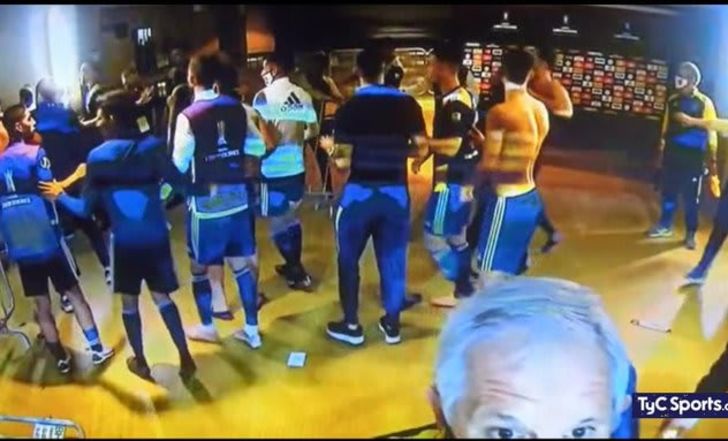 Repressão durante o incidente, no vestiário do Boca, no Mineirão. pic.twitter.com/tNAMkx2aJ4