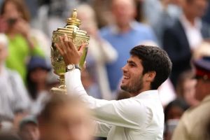 גמר ווימבלדון 2023: הסרבי פתח עם טניס כמעט מושלם ולקח בקלות את המערכה הראשונה, בדרך אולי לתואר גרנד סלאם 24 והשוואת השיא של פדרר בלונדון. מנגד מחפש המדורג 1 את הניצחון המרשים ביותר בקריירה הצעירה שלו, ולאחר התחלה מרובת טעויות הצליח לשבור במערכה השנייה